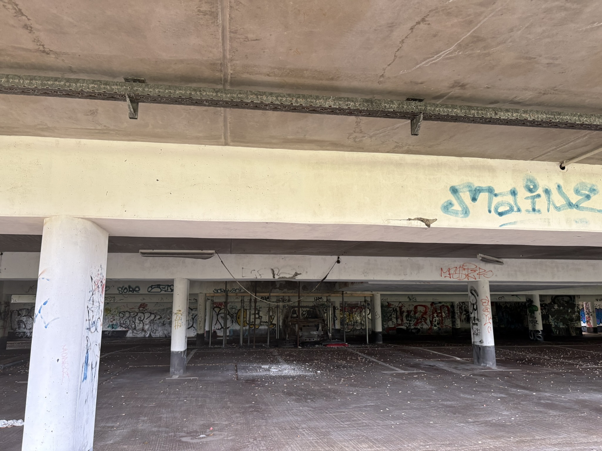 Eine zweite Idee wäre, nur das obere Parkdeck wieder in Betrieb zu nehmen und das Unterdeck dauerhaft zu sperren. So könnten zumindest einige Stellplätze erhalten bleiben, bis eine langfristige Lösung gefunden ist. Der Aufwand wäre geringer als bei einer Vollsanierung, aber die Grundprobleme – Feuchtigkeit, Drainage, laufende Wartung – blieben bestehen. Eine Förderung wäre für eine solche Teillösung unwahrscheinlich.