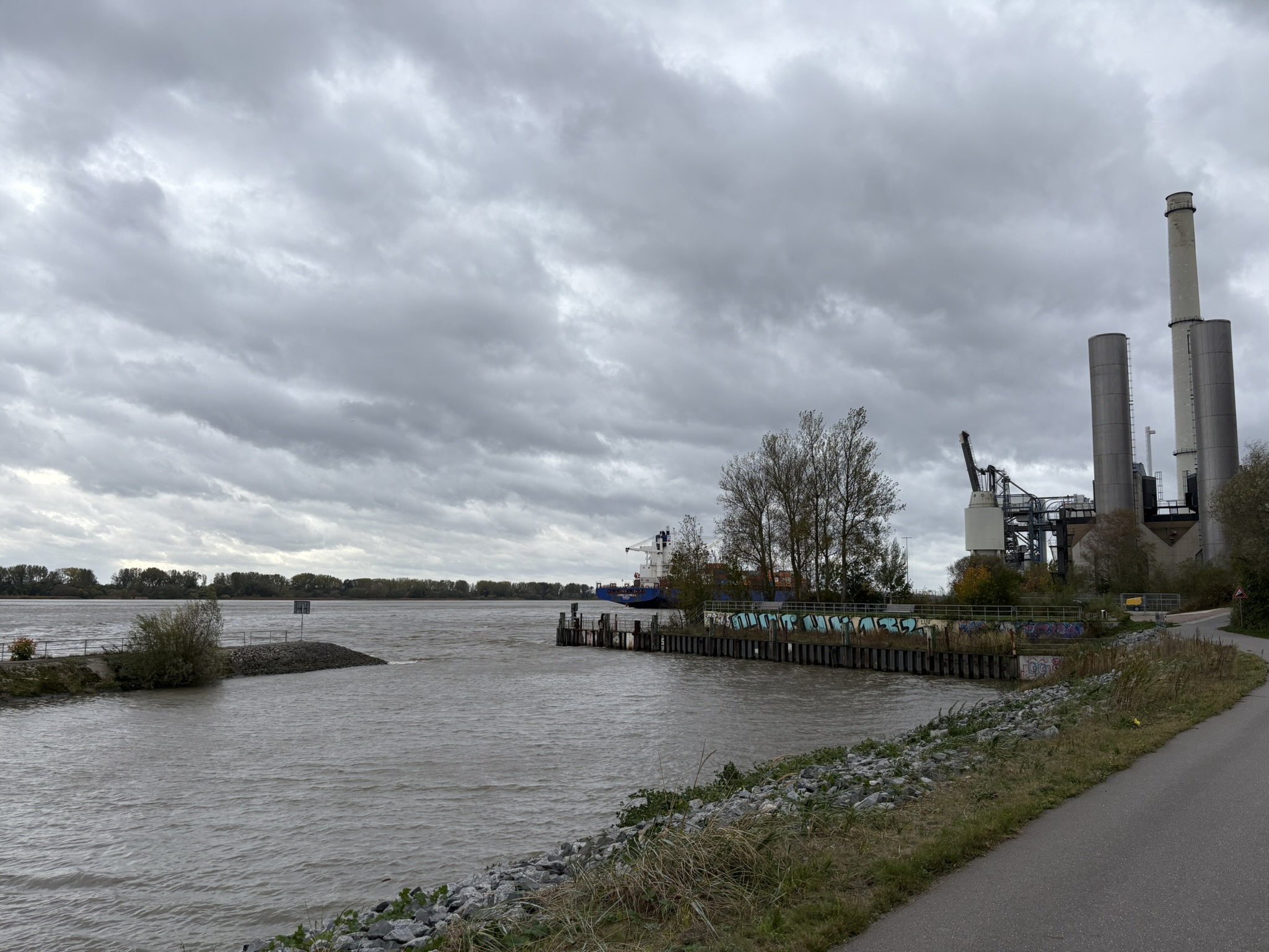 Herbststurm über der Elbe. Grauer Himmel, Wind aus West. Das Wasser drückt tief in die kleine Bucht am Rand des BusinessParks. Zwischen Graffiti an alten Spundwänden und neuen Sitzbänken steht die Mole, die Wellen rollen an die Steinschüttung. Still ist es nicht, aber der Ort wirkt heute zurückgenommen. Wer hier steht, schaut auf ein Stück Wedeler Geschichte.